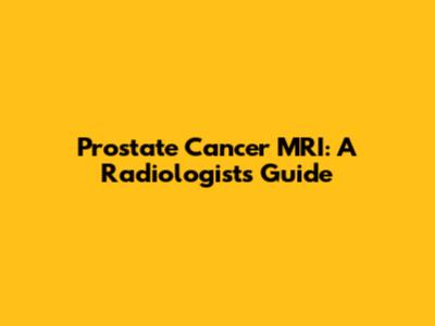 Prostate Cancer MRI: A Radiologist's Guide