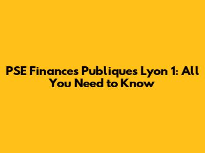 PSE Finances Publiques Lyon 1: All You Need To Know