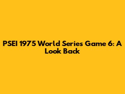 Hey baseball fanatics! Let's rewind the clock and dive into a classic: the 1975 World Series, specifically Game 6. This game is etched in baseball history, not just for the final score, but for the sheer drama, the iconic moments, and the legendary performances. If you're a fan of nail-biting finishes and unforgettable plays, then PSEI 1975 World Series Game 6 is a game you absolutely need to know about. This was an era where the game was played with grit, passion, and a whole lot of heart. Forget about the modern analytics for a second and lets appreciate the raw talent and the stories that unfolded on the field.
