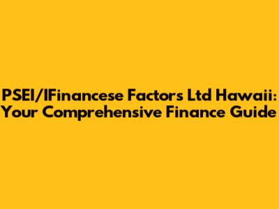 Hey guys! Ever found yourself lost in the maze of finance, especially when trying to navigate the specifics in a place like Hawaii? Well, you're not alone! Let's break down PSEI/IFinancese Factors Ltd and what it means for you in the Aloha State. Whether you're a business owner, investor, or just someone trying to get your financial ducks in a row, this guide is designed to help you understand the key factors at play. So, grab a Mai Tai (or your favorite beverage) and let’s dive in!