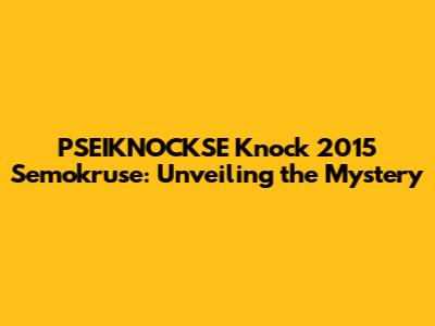 PSEIKNOCKSE Knock 2015 Semokruse: The Ultimate Guide