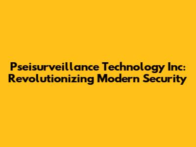 Pseisurveillance: Advanced Tech For Modern Security