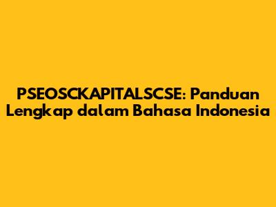 PSEOSCKAPITALSCSE: Panduan Lengkap Dalam Bahasa Indonesia