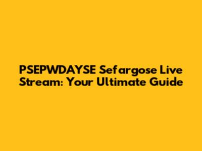 PSEPWDAYSE Sefargose Live Stream: Your Ultimate Guide
