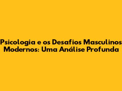 Psicologia E Os Desafios Masculinos Modernos