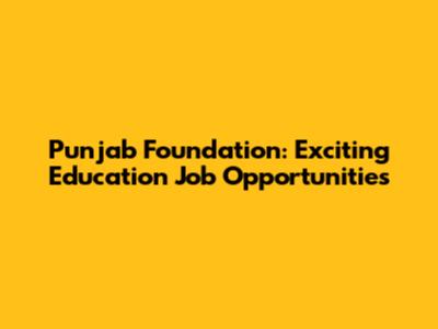 Punjab Foundation: Exciting Education Job Opportunities