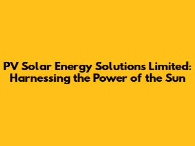 PV Solar Energy Solutions Limited offers a comprehensive range of solar energy solutions to meet the needs of homeowners and businesses. With their expertise, high-quality products, and commitment to customer satisfaction, they can help you harness the power of the sun and enjoy the many benefits of solar energy. From reducing your energy costs to protecting the environment, solar power is a smart investment for the future. So, if you're considering going solar, be sure to reach out to PV Solar Energy Solutions Limited and see how they can help you make the switch.