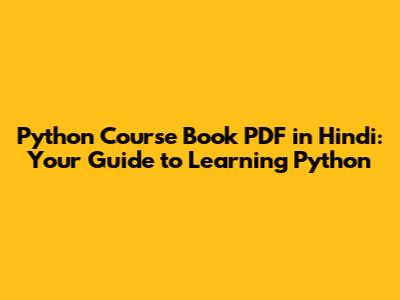 Python Course Book PDF In Hindi: Your Guide To Learning Python