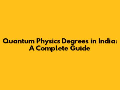 Quantum Physics Degrees In India: A Complete Guide