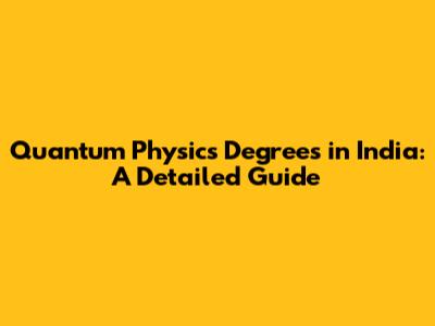Quantum Physics Degrees In India: A Detailed Guide