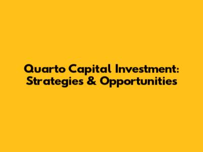 Quarto Capital Investment: Strategies & Opportunities