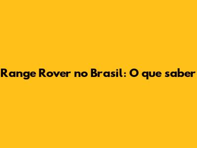 Range Rover No Brasil: O Que Saber