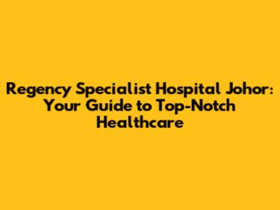 Regency Specialist Hospital: Your Guide To Johor's Top Care