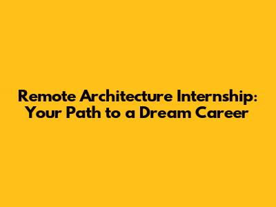 Remote Architecture Internship: Your Path To A Dream Career