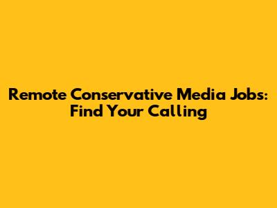 Remote Conservative Media Jobs: Find Your Calling