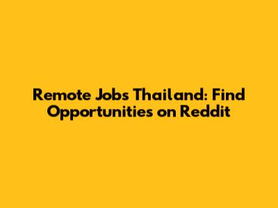 Remote Jobs Thailand: Find Opportunities On Reddit