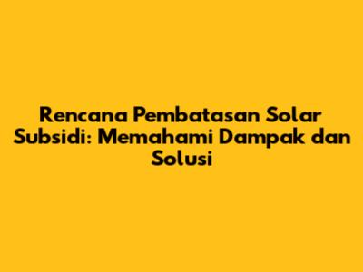 Rencana Pembatasan Solar Subsidi: Dampak & Solusi
