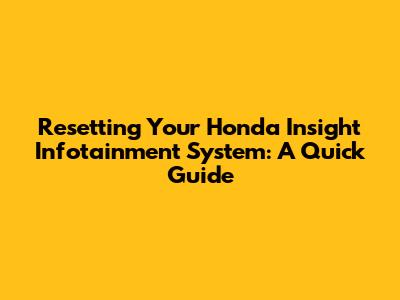 Resetting Your Honda Insight Infotainment System: A Quick Guide