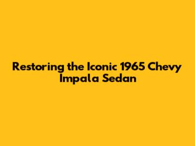 Hey car enthusiasts! Are you ready to dive into the world of classic car restoration? If you're a fan of vintage vehicles, especially the legendary 1965 Chevrolet Impala Sedan, then you're in for a treat. This guide will walk you through everything you need to know about bringing this beauty back to its former glory. From understanding its history to tackling the restoration process, we'll cover it all. Get ready to turn back time and experience the thrill of owning a piece of automotive history!