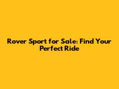 Rover Sport For Sale: Find Your Perfect Ride