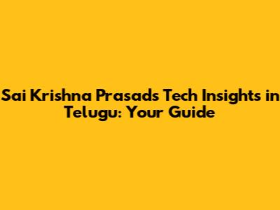 Sai Krishna Prasad's Tech Insights In Telugu: Your Guide