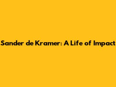 Sander De Kramer: A Life Of Impact