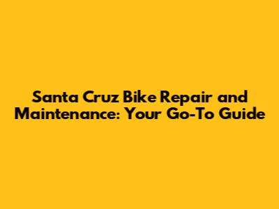 Santa Cruz Bike Repair And Maintenance Guide