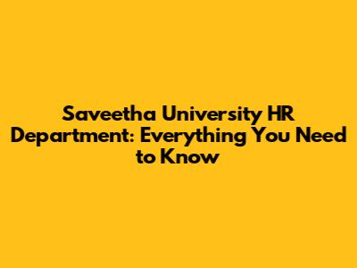 Saveetha University HR Department: Everything You Need To Know