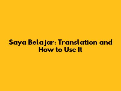 Saya Belajar: Translation And How To Use It