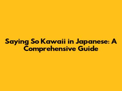 Saying So Kawaii In Japanese: A Comprehensive Guide