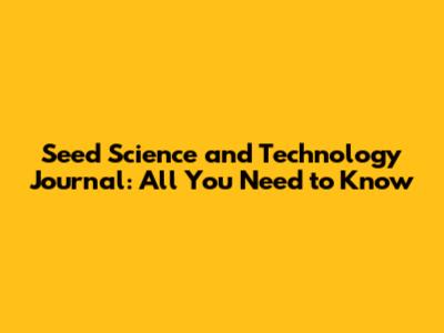 Seed Science And Technology Journal: All You Need To Know