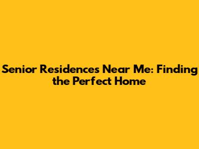 Senior Residences Near Me: Finding The Perfect Home
