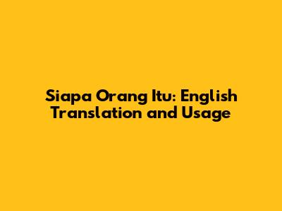 Siapa Orang Itu: English Translation And Usage