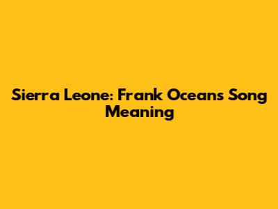 Sierra Leone: Frank Ocean's Song Meaning