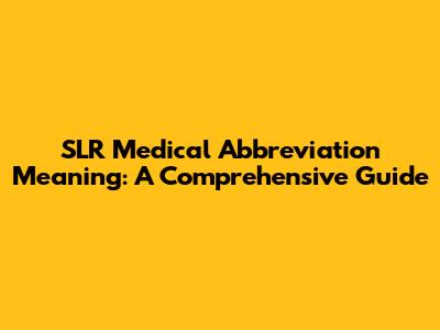 SLR Meaning: Unpacking The Medical Abbreviation