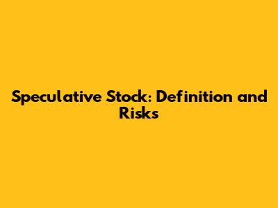 Speculative Stock: Definition And Risks