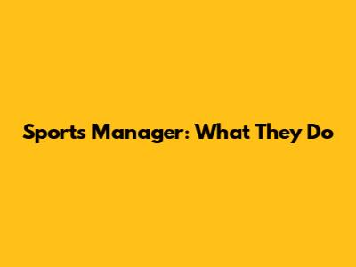 Sports Manager: What They Do
