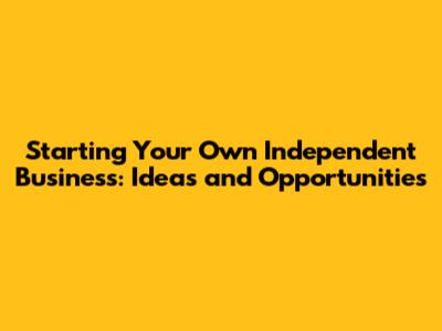 Start Your Own Independent Business: Ideas & Opportunities