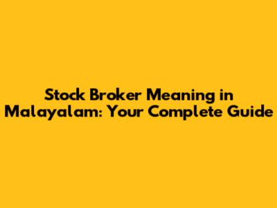 Stock Broker Meaning In Malayalam: Your Complete Guide