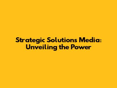 Strategic Solutions Media: Unveiling The Power