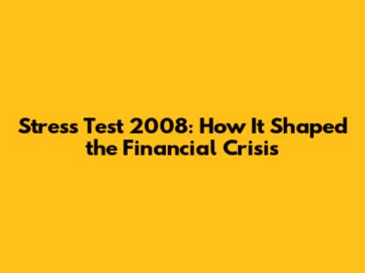 Stress Test 2008: How It Shaped The Financial Crisis
