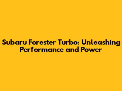 Subaru Forester Turbo: Performance, Specs, And More
