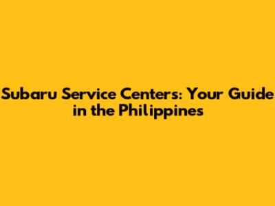 Locating Subaru Service Centers in the Philippines