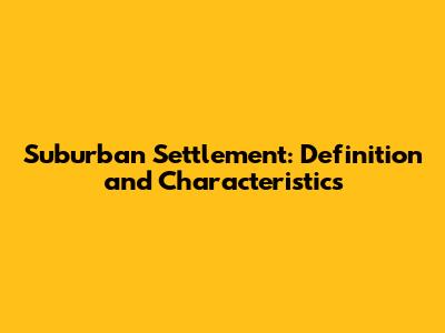 Suburban Settlement: Definition And Characteristics