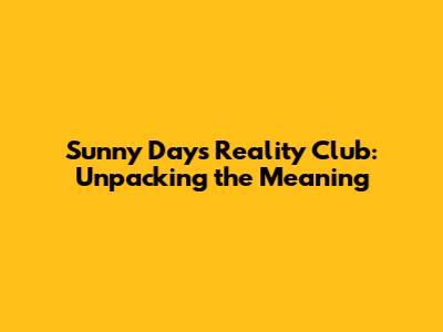 Sunny Days Reality Club: Unpacking The Meaning
