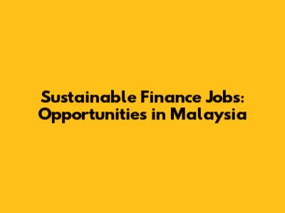 Sustainable Finance Jobs: Opportunities In Malaysia