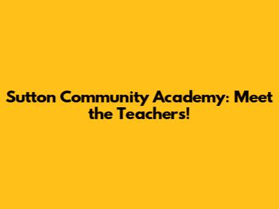Sutton Community Academy: Meet The Teachers!