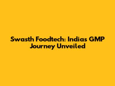 Swasth Foodtech: India's GMP Journey Unveiled