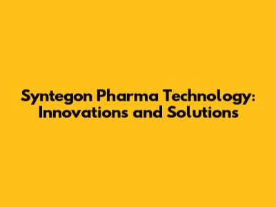 Syntegon Pharma Technology: Innovations And Solutions