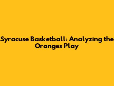 Syracuse Basketball: Analyzing The Orange's Play